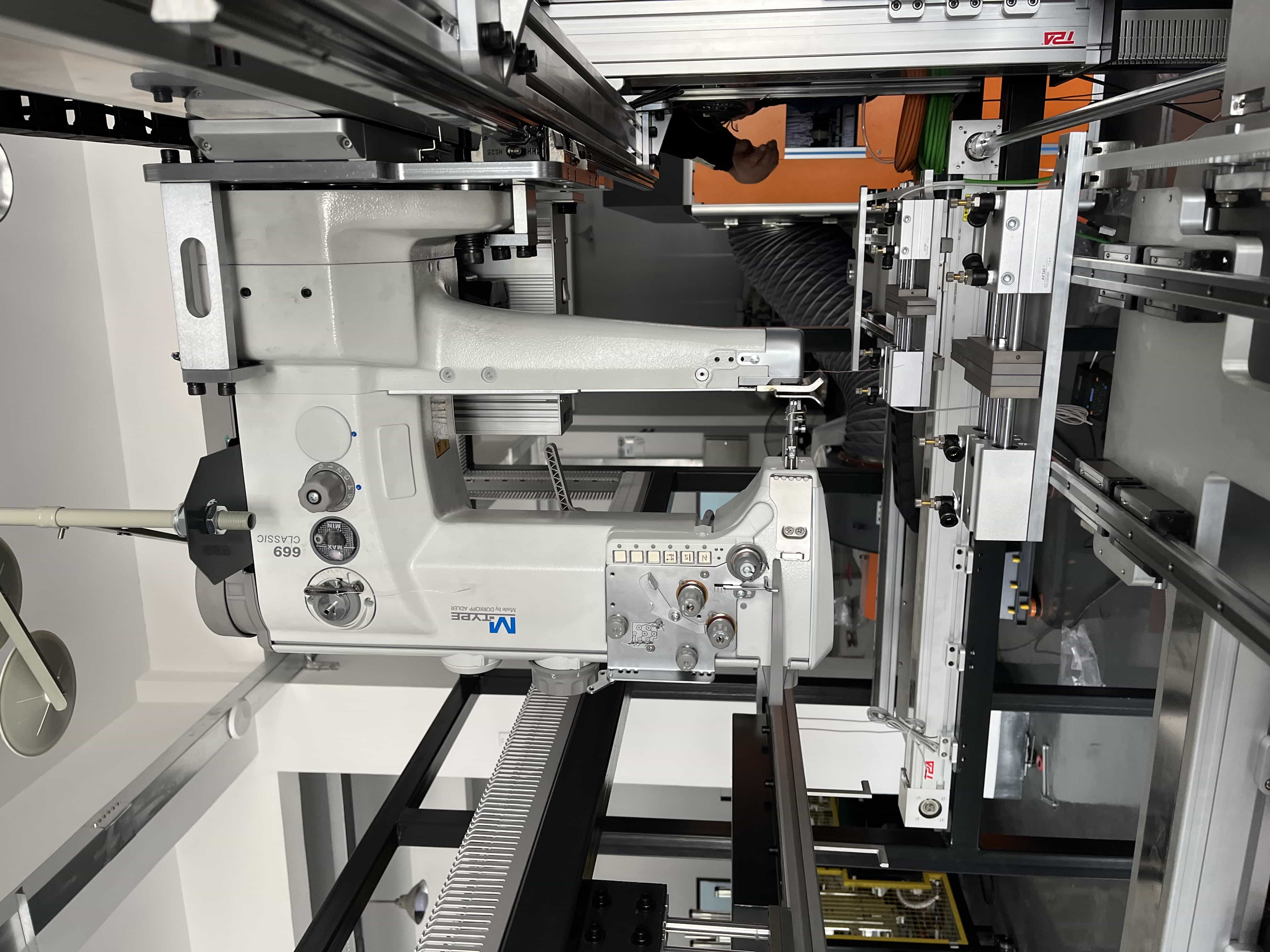 特点:替代缝纫工,可一人操作两台设备、断线报警、缺线提醒、大旋梭